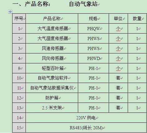 自動氣象站,用于對風向、風速、雨量、氣溫、相對濕度、氣壓、太陽輻射、土壤溫度、土壤濕度等九個氣象要素進行全天候現場監測。具有手機氣象短信功能,可以通過多種通訊方法(有線、數傳電臺、GPRS移動通訊等)與氣象中心計算機進行通訊,將氣象數據傳輸到氣象中心計算機氣象數據庫中,用于統計分析和處理。
